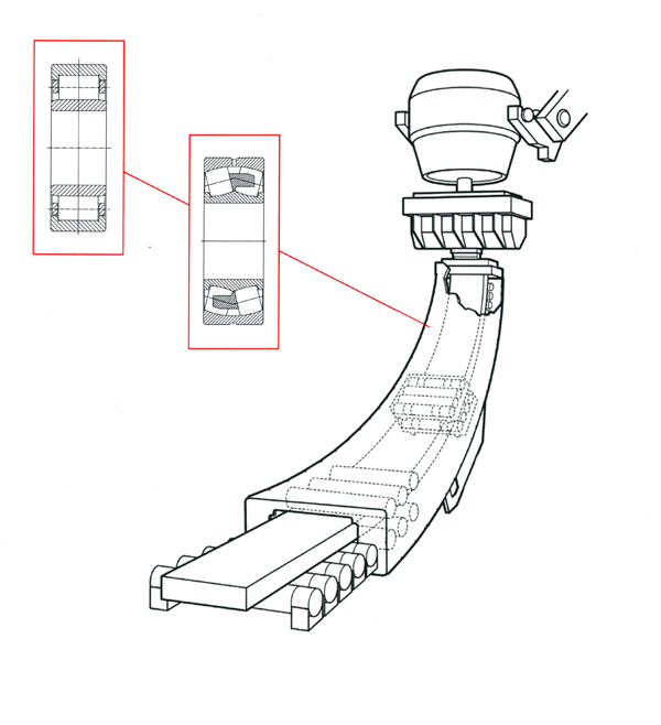 在冶金行業(yè),產(chǎn)品主要應(yīng)用于連鑄機、熱軋前后及加熱爐的運送輥道等。針對連鑄機在高溫、重載、重污染的工況條件下連續(xù)工作的應(yīng)用特點,開發(fā)了專用于連鑄機的系列產(chǎn)品,主要應(yīng)用于結(jié)晶器振動裝置、扇形段及冷卻段板坯輸送輥道,并已在國內(nèi)外多家鋼廠的新生產(chǎn)線上成功運行。也是鋼鐵生產(chǎn)企業(yè)的日常維修軸承的重要供應(yīng)商,產(chǎn)品廣泛應(yīng)用于齒輪箱、風(fēng)機及輸送輥道等。